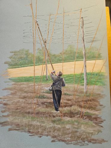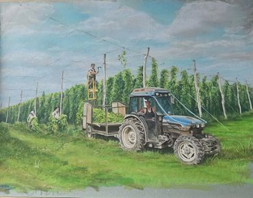 I work full time on our family farm in Sandhurst, Kent growing hops and vines. I have always loved art but farm work put this on the back burner for many many years: at times work just consists of eat sleep work repeat!!